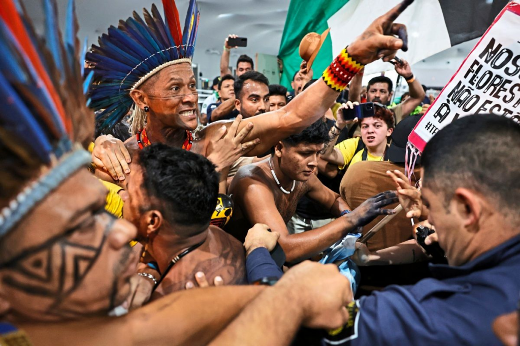 La tradizione della colonizzazione si manifesta attraverso lo sfruttamento della foresta pluviale, l’agricoltura industriale, l’estrazione mineraria e la produzione di petrolio che distruggono i territori indigeni. Saluti solidali agli indigeni che hanno preso d’assalto l’edificio della conferenza sul clima, scatenando un momento di rivolta.